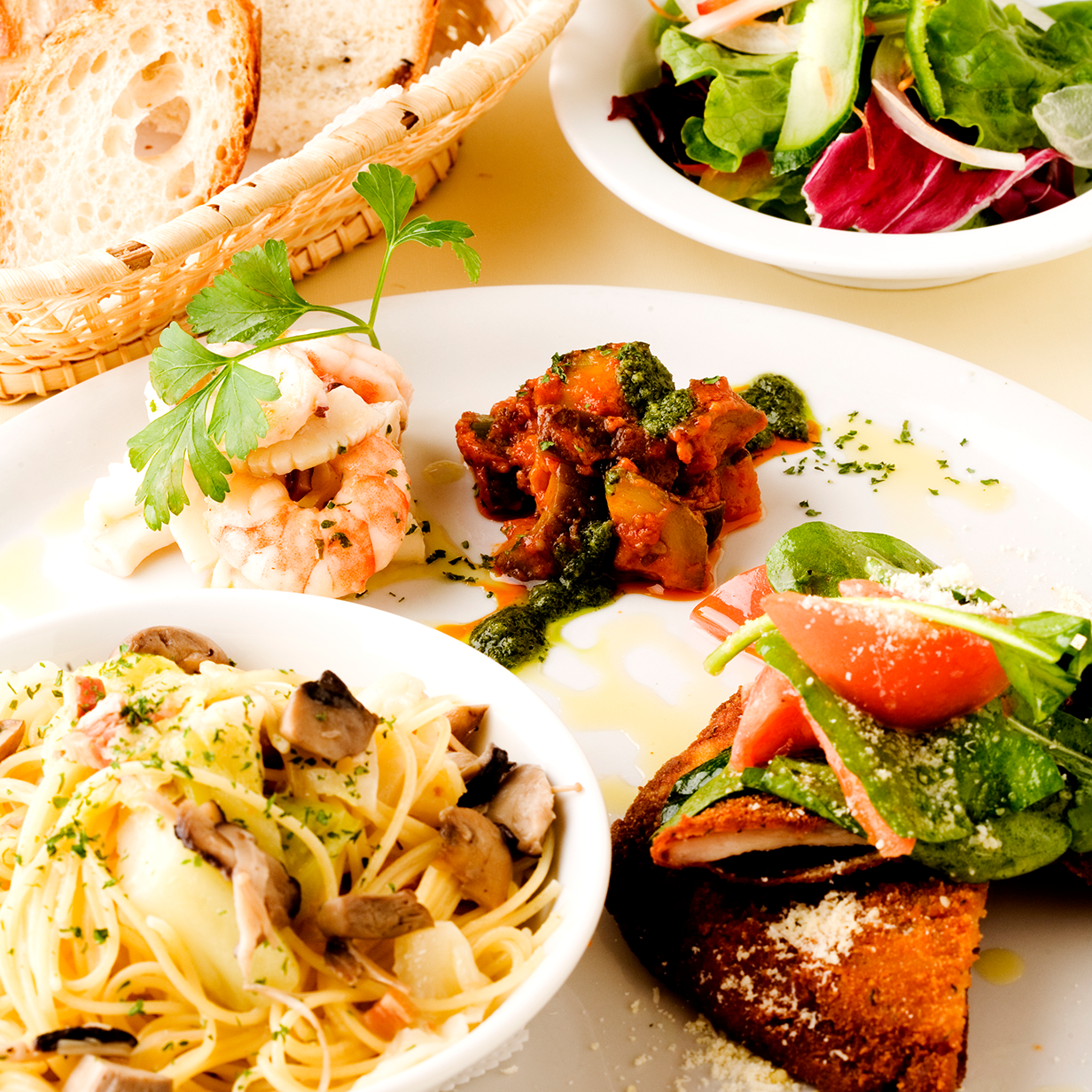 自慢の本格的なイタリアンの味はもちろん、自家製前菜をおつまみにビールにワインはいかがでしょうか。生パスタやピッツァをはじめ、気取らずお食事できる一時を御提供致します。