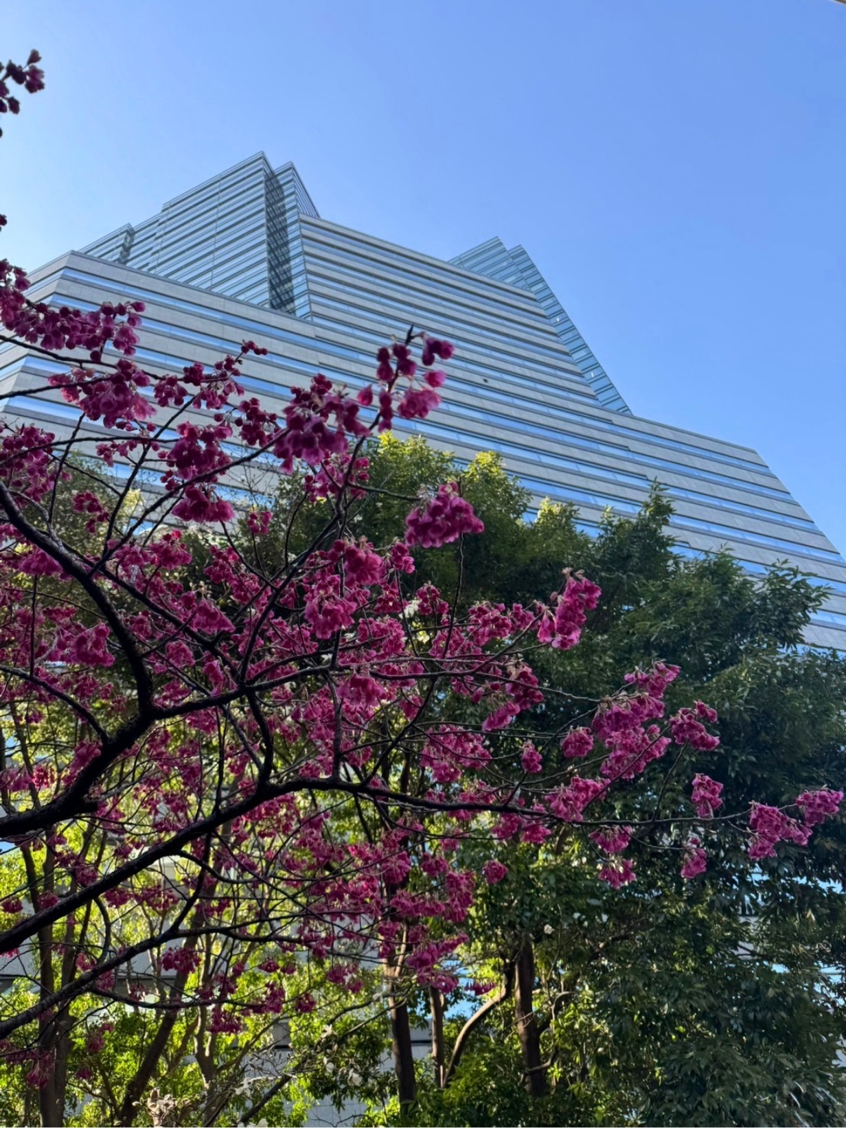 ゲートシティ大崎イーストタワー側、サウスパークタワー居住棟遊歩道の寒緋桜が見頃を迎えています。