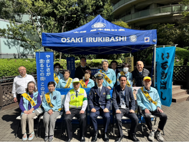 春、秋に行われる「全国交通安全週間」にはゲートシティ大崎エリア内に町会テント設営、地域の方々と通学生徒はもちろん、黄色い帽子をかぶったピカピカの一年生の登下校を見守る活動を応援しています。