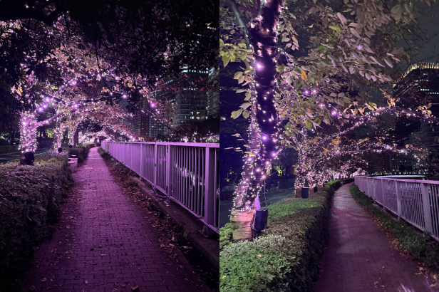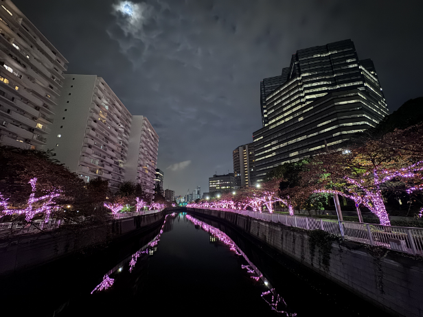 足早に過ぎ去った短い秋、冬の訪れを最初に堪能するイベント「目黒川みんなのイルミネーション 2005」が 2025 年 12月 5 日(金)~2026 年 1 月 31 日(土)までゲートシティ大崎 ノースガーデン側、目黒川居木橋(いるきばし)から五反田大崎橋までの約 2 ㎞に桜色の LED 電球で冬の桜を彩ります。